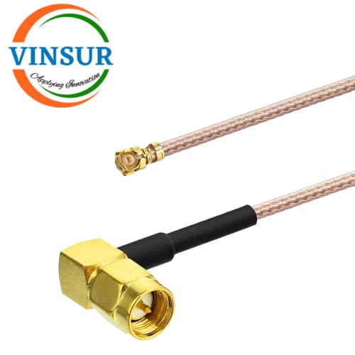 VSW250084-CA — UFL FEMALE RIGHT ANGLE TO SMA FEMALE STRAIGHT BULKHEAD FOR RG178 CABLE ASSEMBLY LENGTH OF 117MM